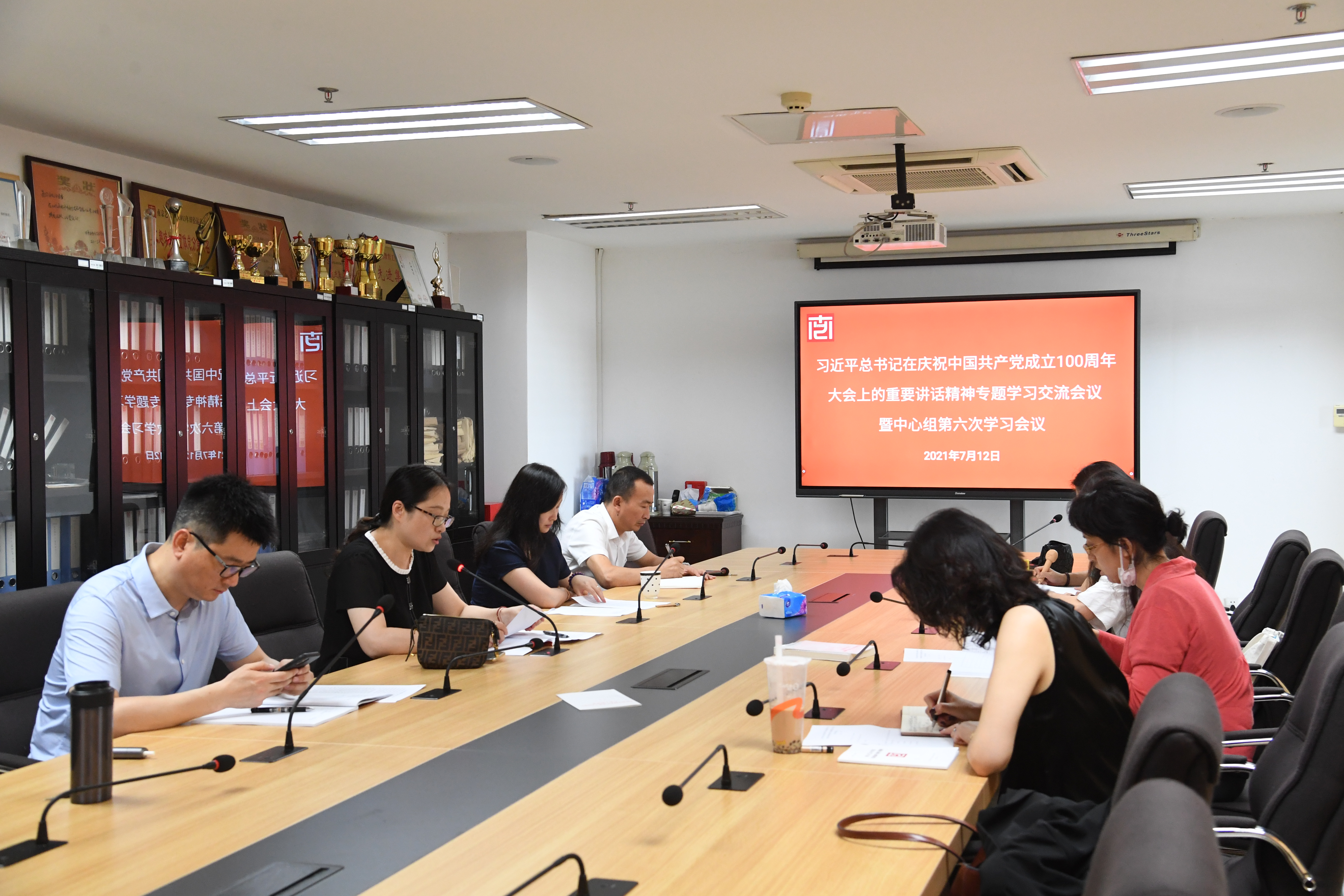 7月12日下午13时,公司党总支中心组召开第六次学习会议,专题学习习近平总书记在庆祝中国共产党成立100周年大会上的重要讲话精神。全体党总支委员、支部正副书记参加了会议。会上,公司党总支书记张从渡、今年会经理许薇、党总支副书记夏雷雷、副经理杨剑昕、综合办公室主任朱晓琦分别就观看庆祝中国共产党成立10...