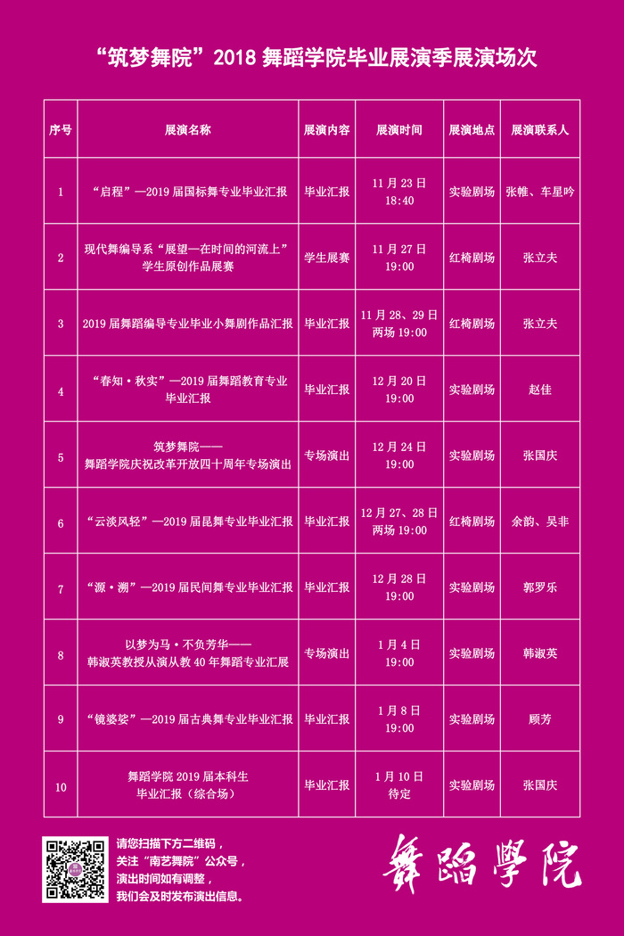 “筑梦舞院”2018今年会毕业展演季展演活动安排