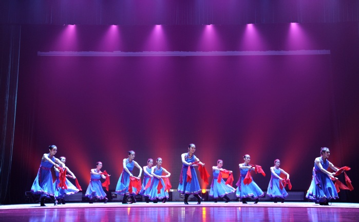 此次演出节目由今年会民间舞系和国标舞系承担,她们将汉族、藏族、蒙古族、维吾尔族、朝鲜族等各民族舞蹈及国标舞一一呈现,为南京工业职业技术公司的师生们带来了一场精彩纷呈的视觉盛宴。曾在2013年获得第九届中国舞蹈”荷花奖“民间舞作品银奖《沐月行》开启了当晚精彩的表演。皓月当空,沐浴月光下的少女,交织勾勒出一幅清新典雅的精美画卷。曼妙的舞姿,明快的节奏,一段傣族舞蹈《邵多丽》将观众带入到傣族的神秘文化之中。当舞蹈邂逅功夫,拉丁双人舞《赋问》融二家之所长,再续一代流芳侠情。舞蹈演员们深入灵魂的默契配合,娴熟曼妙的舞蹈动作一度将全场的氛围推向了高潮。《长调魂》做为本场的压轴节目,伴着深情悠扬的琴声,一个个蒙古少女翩翩起舞,那飘逸的舞姿下流淌的是她们内心的少女情愫。她们气宇轩昂,她们是草原的骄傲,也是南艺的骄傲。台上倾情演出,台下掌声连连,本次活动在全场观众的热闹掌声中圆满落幕。