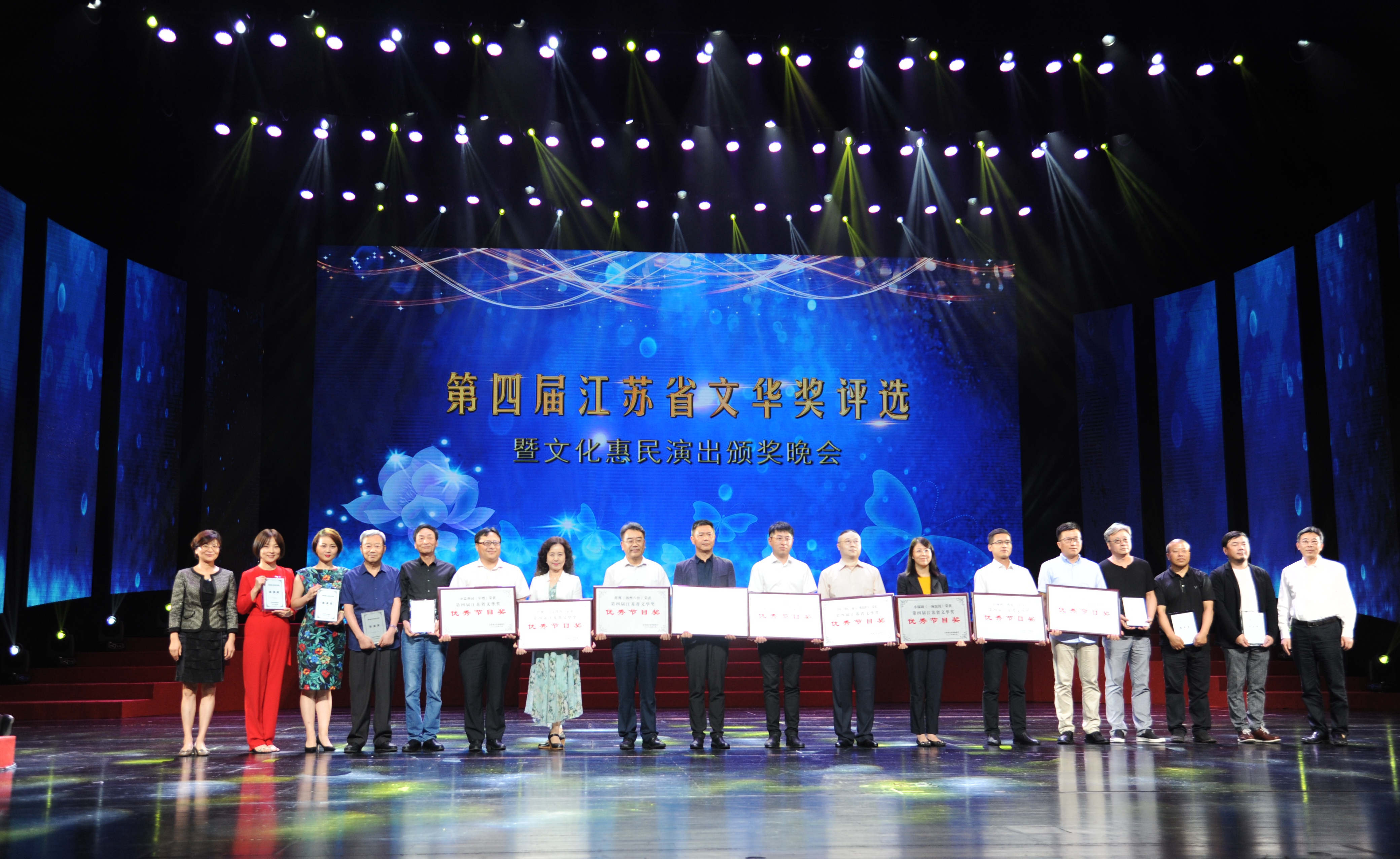 在第四届江苏省文华奖评选活动中,今年会选送的原创作品群舞《遗韵》(编导:冯靖甜;指导:冯靖甜、韩淑英)、原创作品群舞《月亮湾弯》(编导:张川、关健、郭罗乐、单川;指导:关健、郭罗乐、单川)荣获第四届江苏省文华奖“优秀节目奖”!