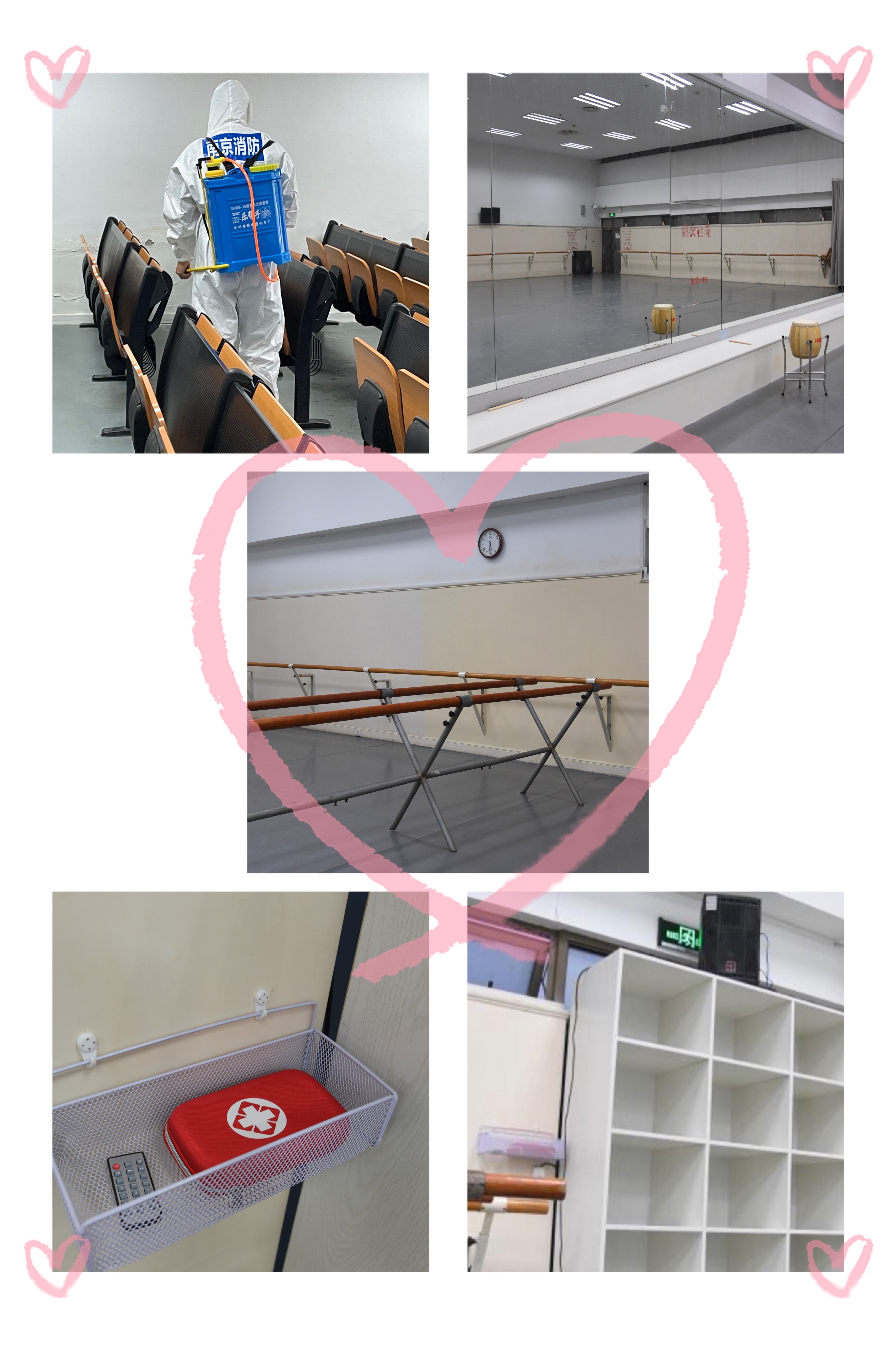 作为教工第一支部的主力——行政管理队伍,也以高度的使命感、责任感,将自己摆进去,将工作摆进组,实现从“要我办”向“我要办”的转变,舍我其谁,责无旁贷。通过谈心谈话、座谈研讨等方式,根据群众的心声梳理办事清单,制定落实措施:例如假期中,将所有练功房的柜子、鞋架、把杆等维修翻新;每个练功房添置了蓝牙音箱、教学用鼓,并配备了爱心急救包;疫情常态化,每个练功房及理论教室开学前请南京市消防队的同志们进行了专业消杀。开学后,物业公司的保洁员在每日正常保洁的同时,也保证一周两次的消毒,并制作了防疫消毒卡,做好记录工作;行政管理人员主要集中在演艺大楼11楼办公区,离洗手间有一定的距离,由于演艺大楼为开放式设计,冬天及雨雪天气多有不便,本学期已在11楼办公区域安装了水池,方便工作人员日常清洗;教工之家本学期开学就正常开放,中午及课间供老师们休息,提供咖啡、饼干等自助;为了方便师生课间饮用水的问题,在每层练功房及三楼理论教室,均安装了咖啡机及饮料机。