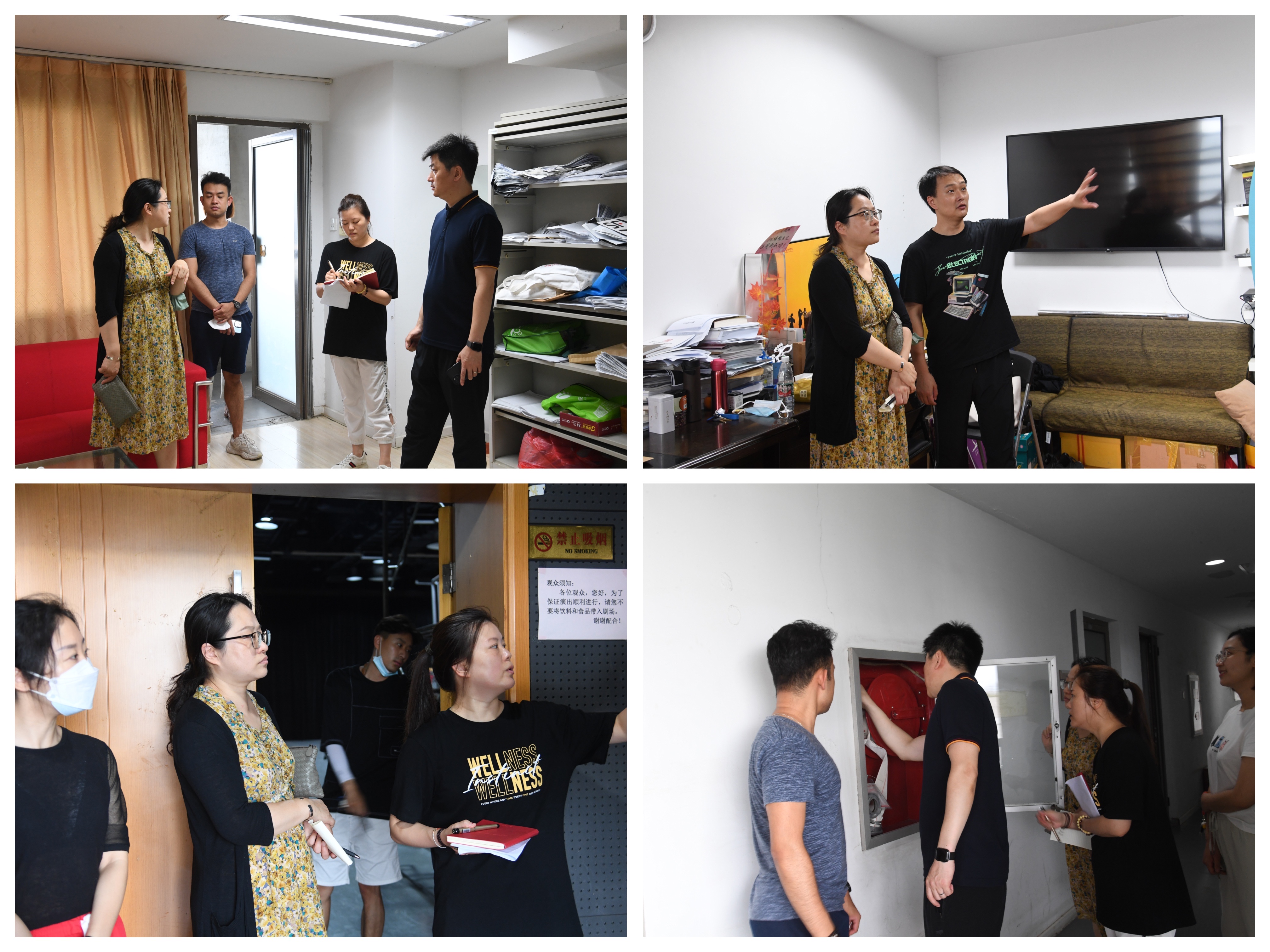 会后次日,公司领导班子带队深入演艺大楼开展安全检查,针对公司教学设施、行政办公场地、消防等方面的安全问题进行了细致地走访与排查,并针对部分利用率低、存在安全隐患的教学设施与场地提出整改措施。